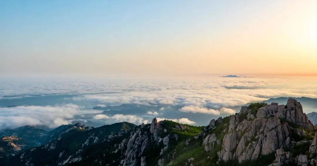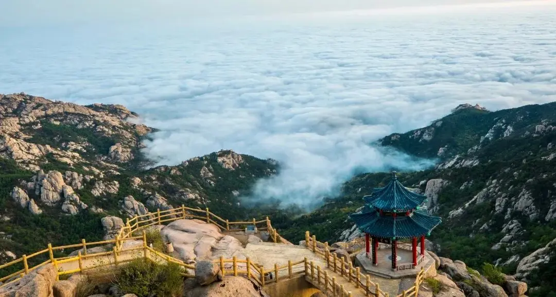 登顶崂山,看远处云海缭绕
