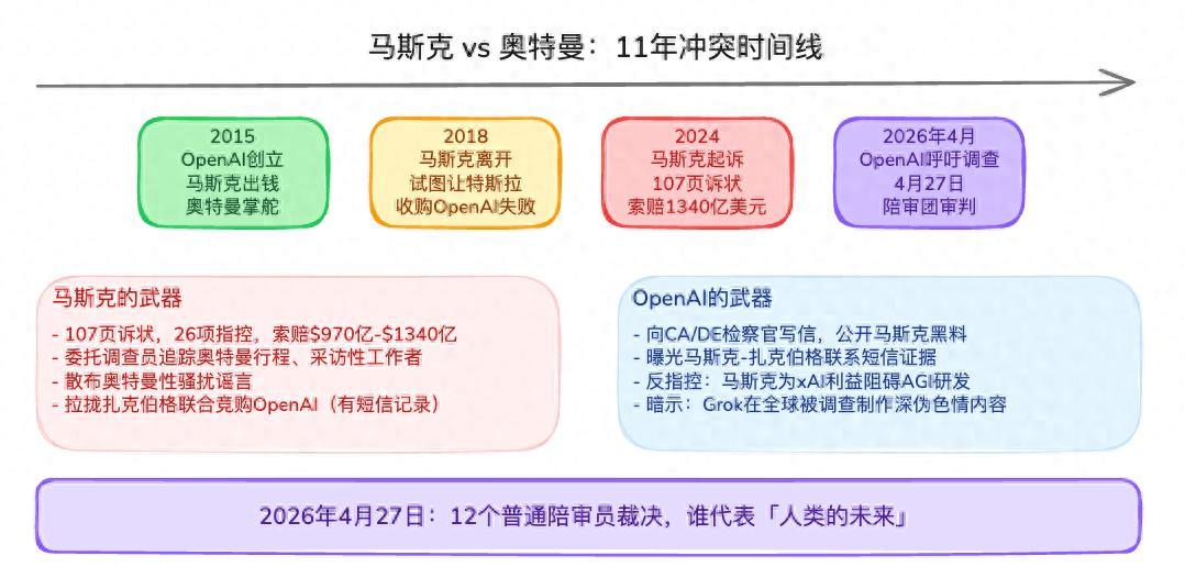 OpenAI的优势:被告方,可以说"我们在做正确的事,他在干扰我们"。营利化转型已经获得了加州检察官的认可,有合法性背书。