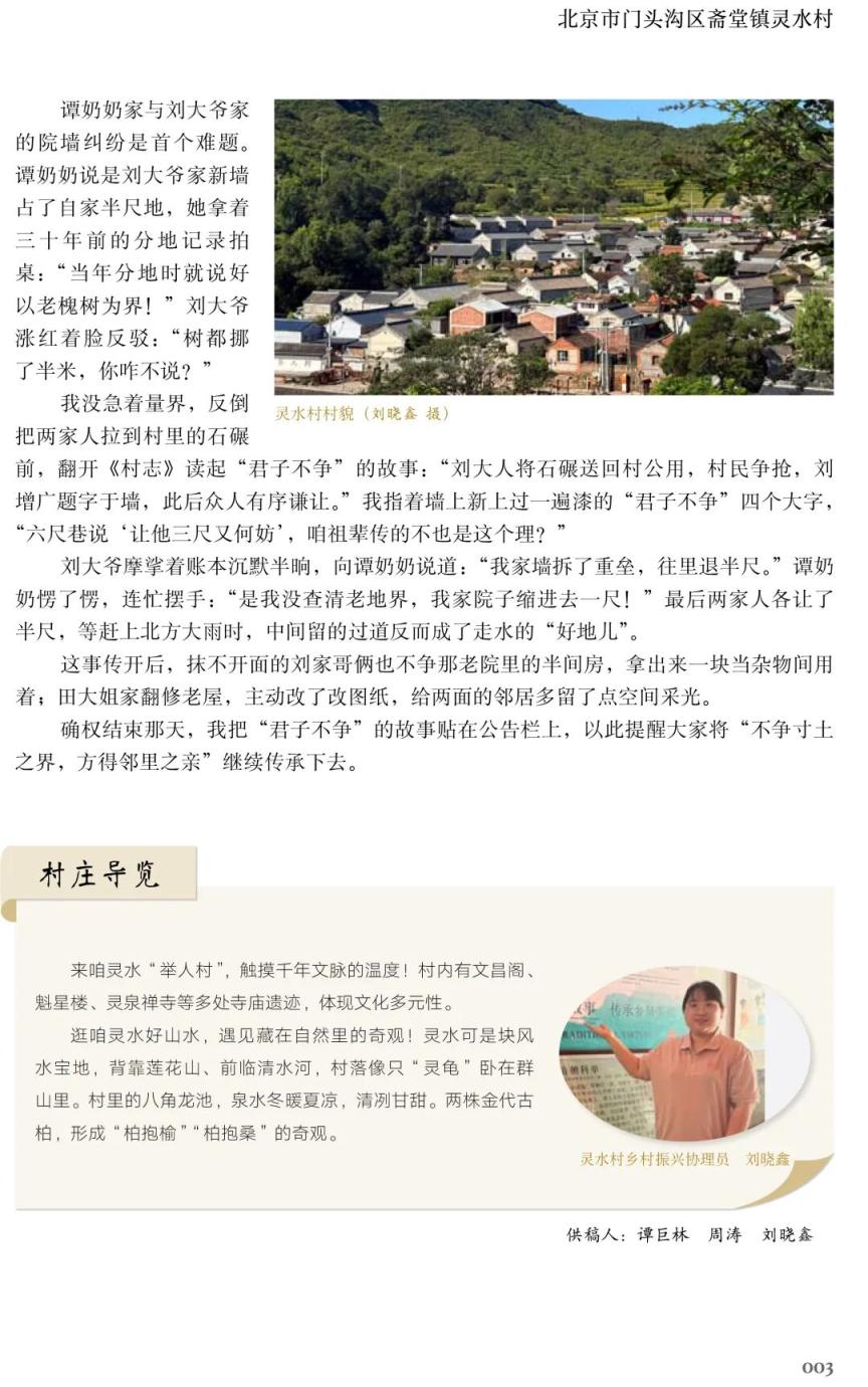 斋堂镇灵水村“灵水八德”:以质朴的乡规民约,诠释了“勤耕善养、仁爱谦和”的处世之道,将生态保护与邻里和睦的智慧融入日常。