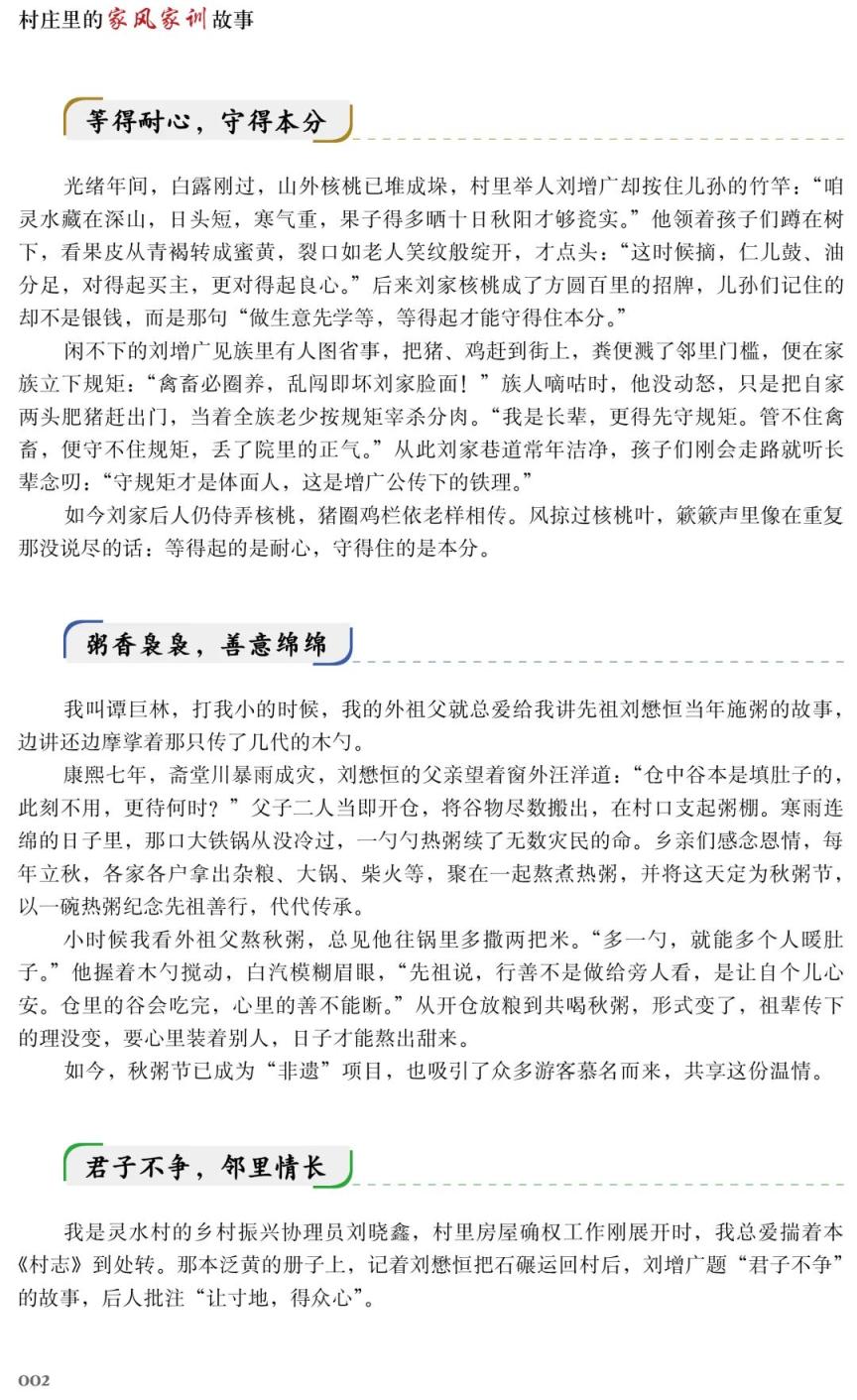 近日,农业农村部为弘扬优秀传统文化、培育文明乡风、推进农村精神文明建设骆驼优配门店,精心组织编写的《村庄里的家风家训故事》一书已正式出版发行!该书由中国农业出版社立项,面向全国广泛征集稿件,经农业农村部社会事业司统筹协调、中央农广校等单位具体实施,共收录100多个代表性村庄家风故事。